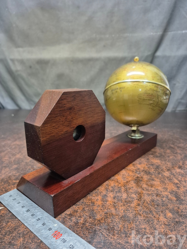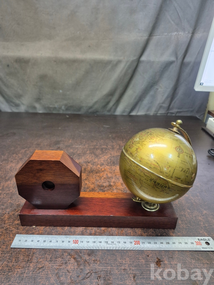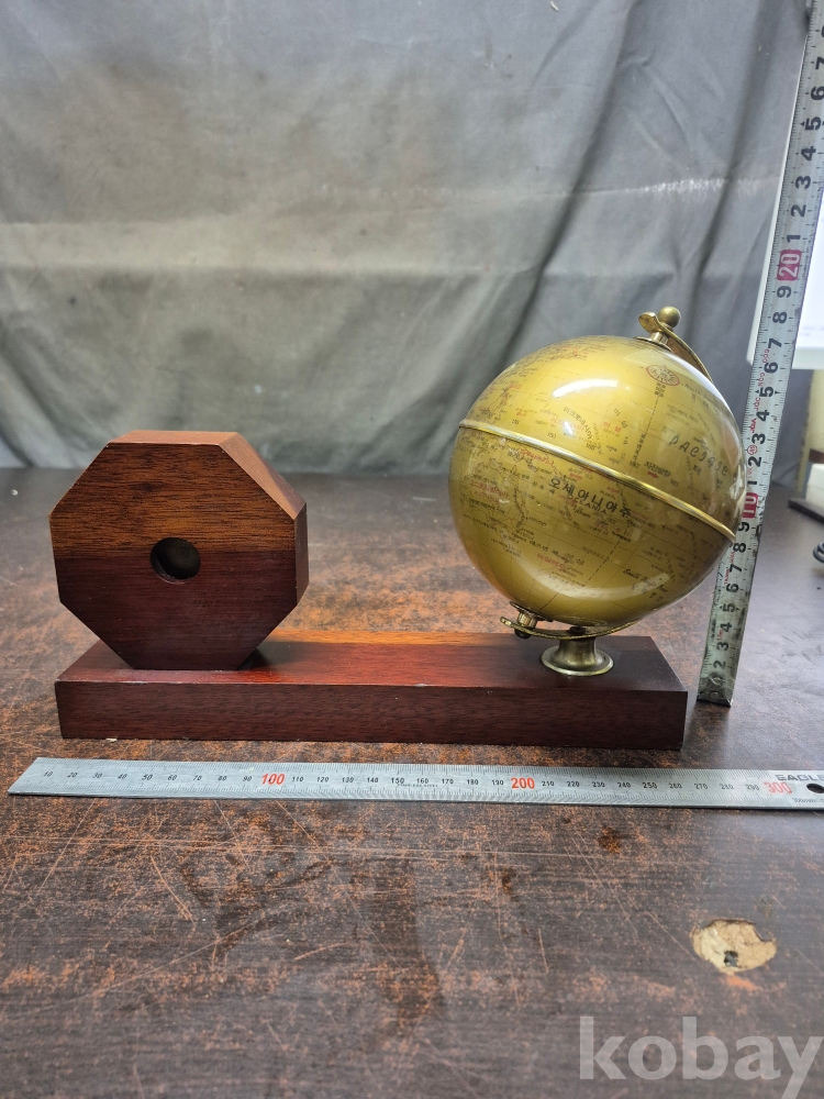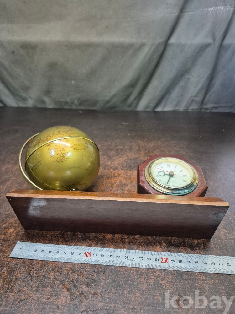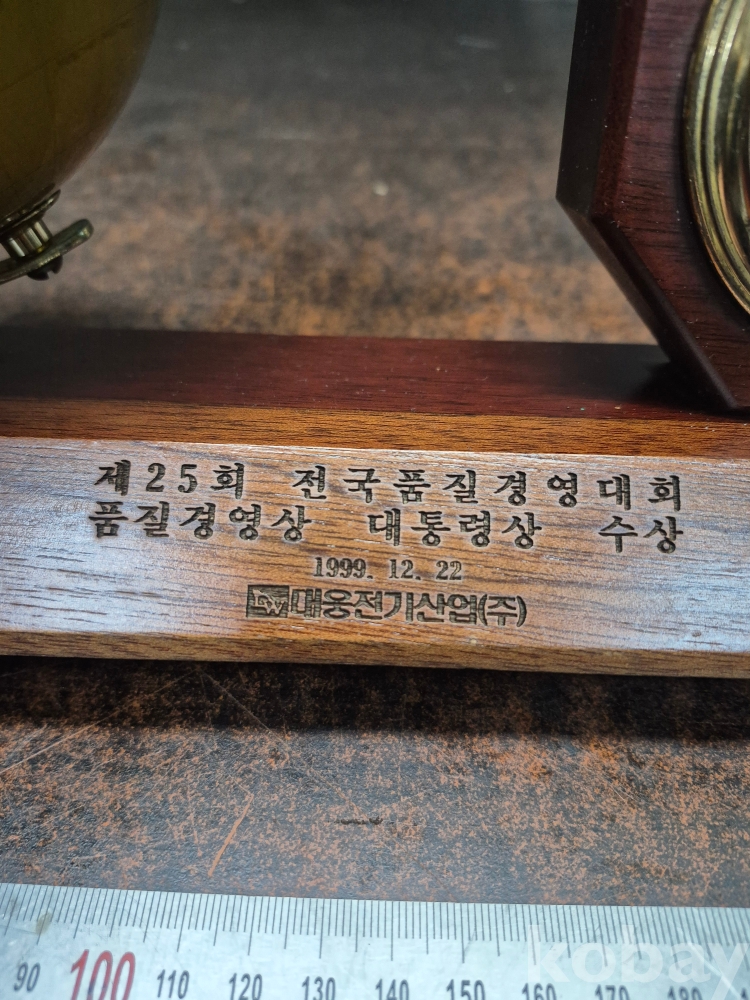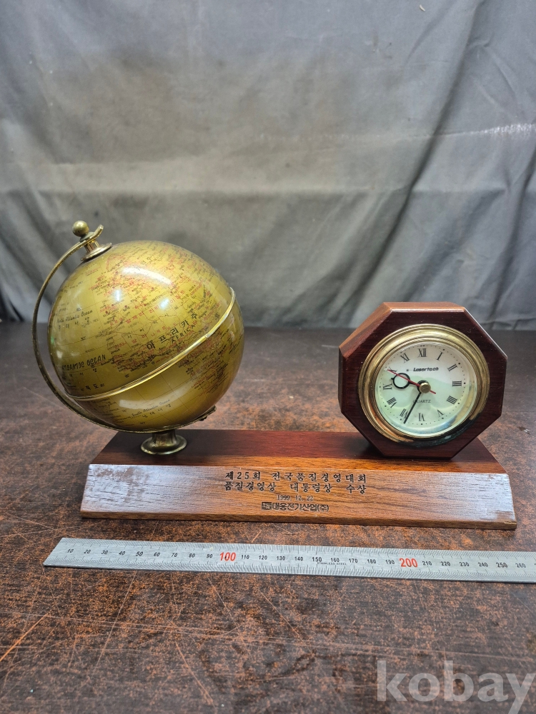 1999년 제 25회 전국 품질 경영대회 품질경영상 대통령상 수상 기념 원목 탁상용 시계겸 지구본 시간 정상 대웅전기 27/*8*20