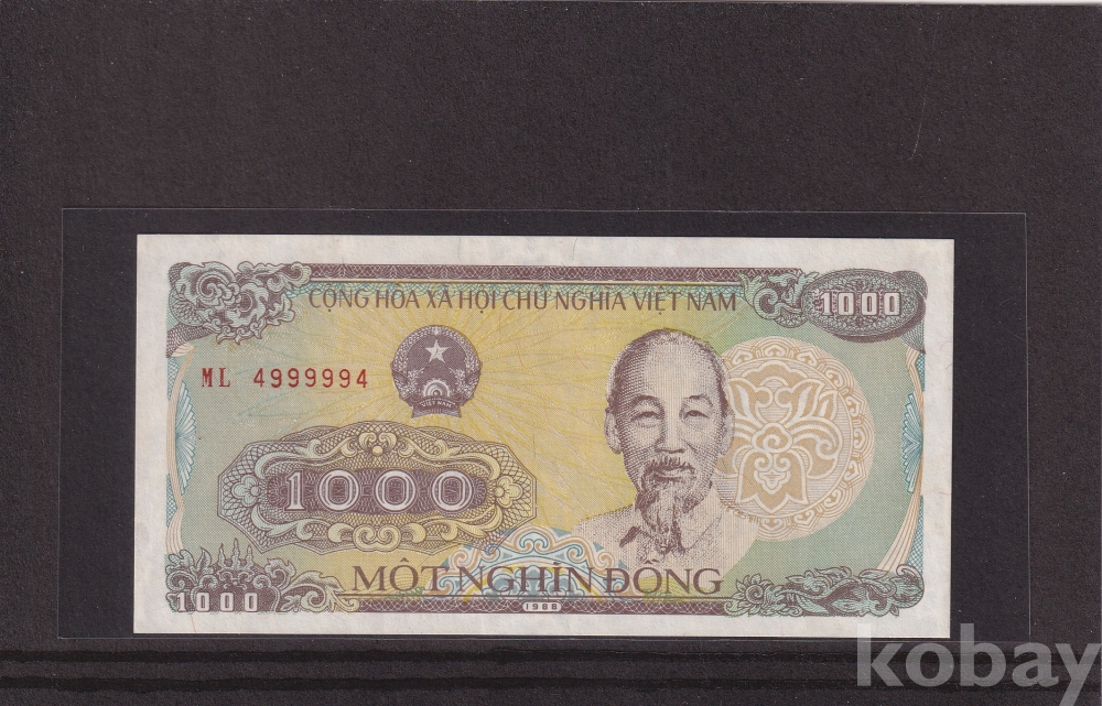 *베트남 특이번호 지폐 모음展* 1988년 1000동 ML 4999994 - 5봉 레이더 미사용 지폐