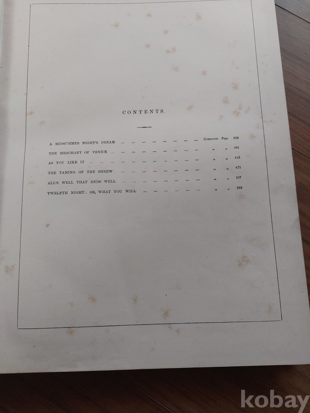 셰긱스피어 희곡집으로 1800년대 발행 표지 안쪽 사인으로 추정