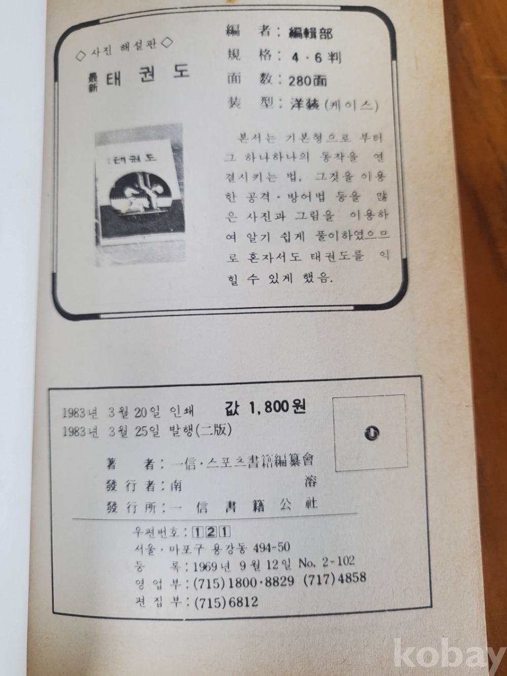 1. 현대 호신술, 일신서적공사, 1983년, 214쪽, 상태 상, 사진 참조