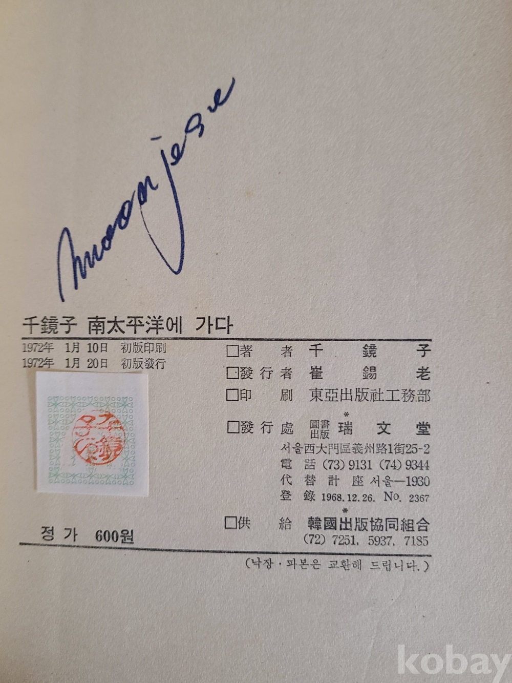 천경자 수필집 <남태평양에 가다> 희귀 초판본