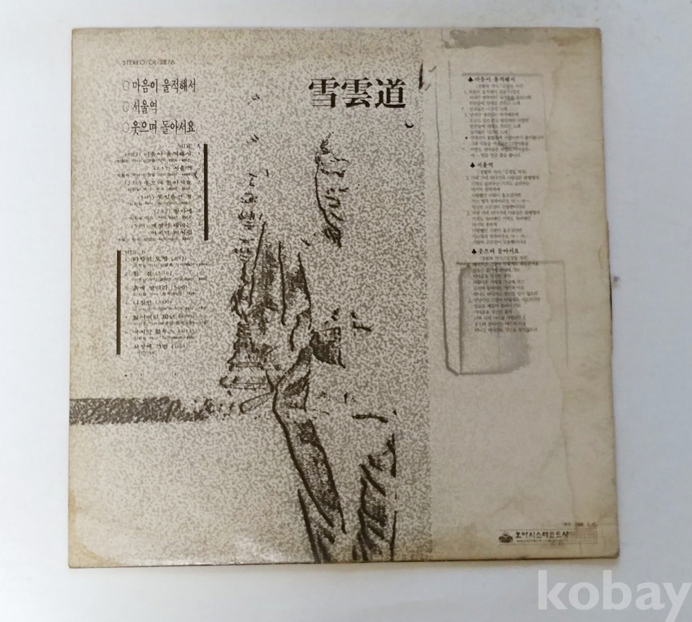 | 자켓상태 | EX : 약간의 마모, 모서리 찢김 존재 | 음반상태 | EX : 재생에 영향 없는 가벼운 기스 존재 | 발매정보 | 알수없음 | 가사지여부 | 무 |