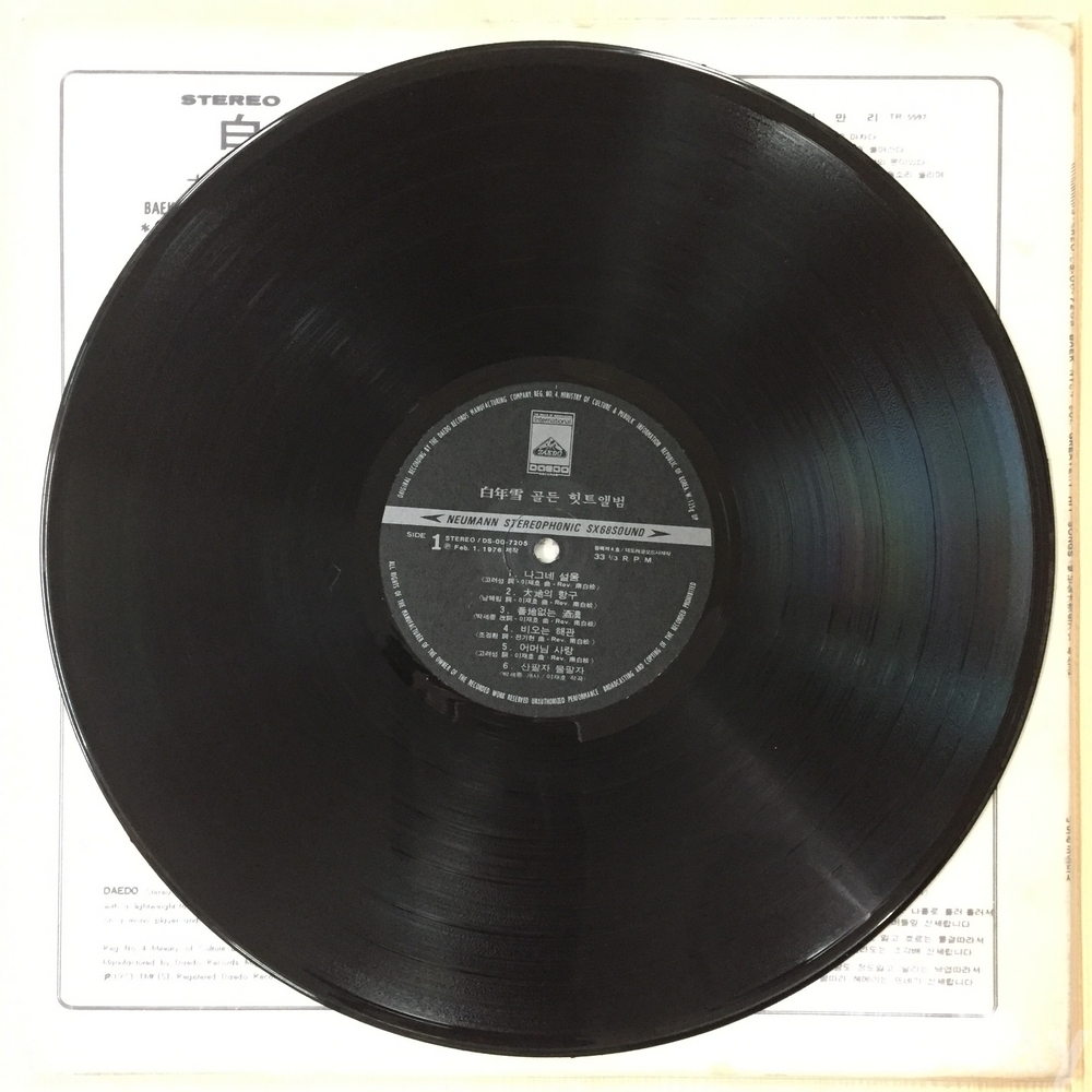 . 가요음반 대부분은 휘어짐이나 손상을 방지하기 위해 무지싱글자킷을 하나 더 사용하여 보관되었던 음반들입니다.