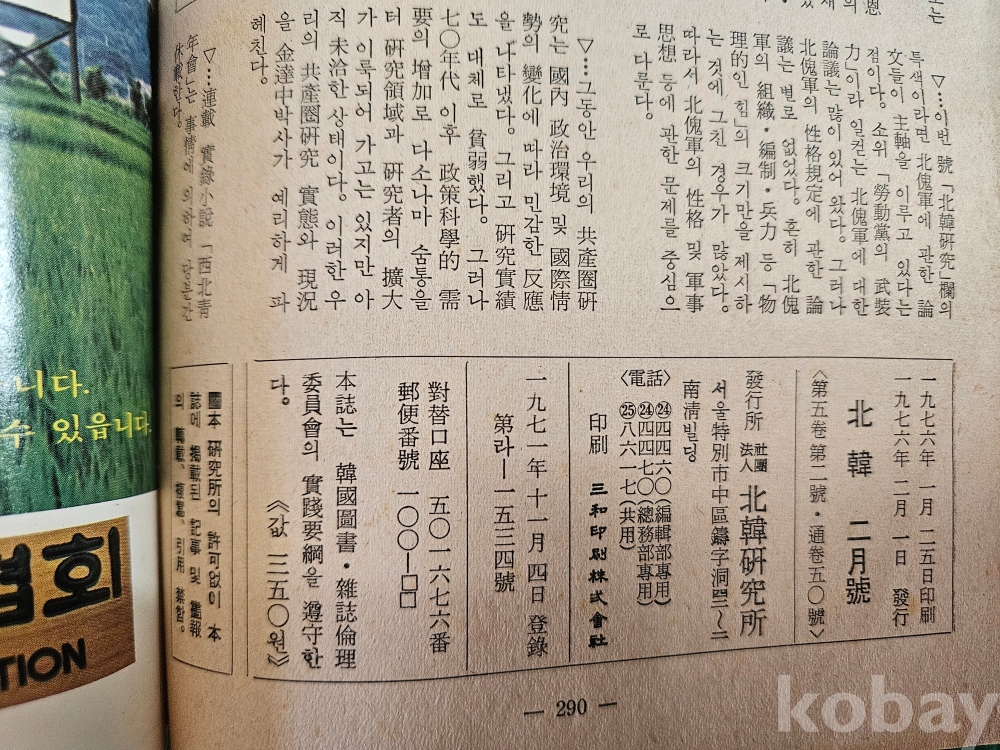 1] 품명 : " 北 韓 2월호 " ( 제5권 제2호 통권 50호 )