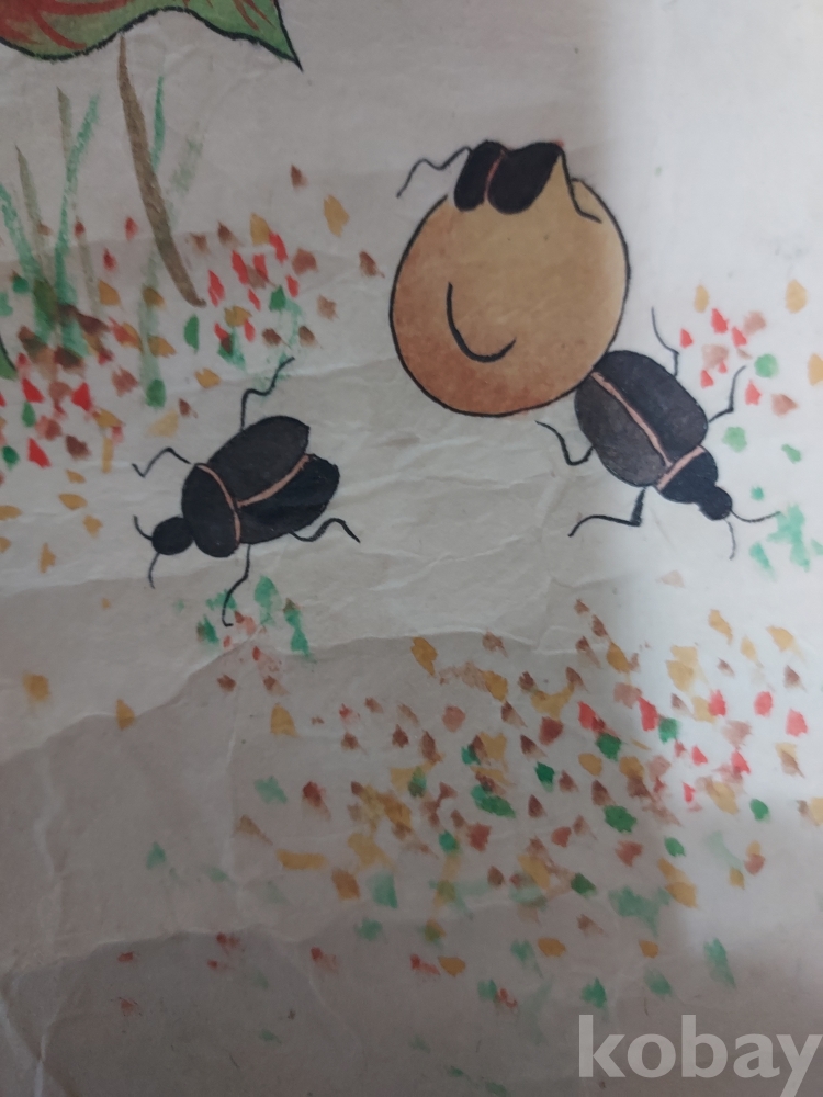 쇠통구리가 경단을 굴리고 있는 재미있는 희귀한 그림 입니다