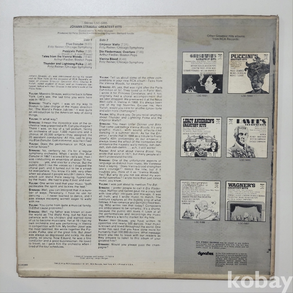 요한 슈트라우스의 LP 앨범인 'Johann Strauss' Greatest Hits'입니다.