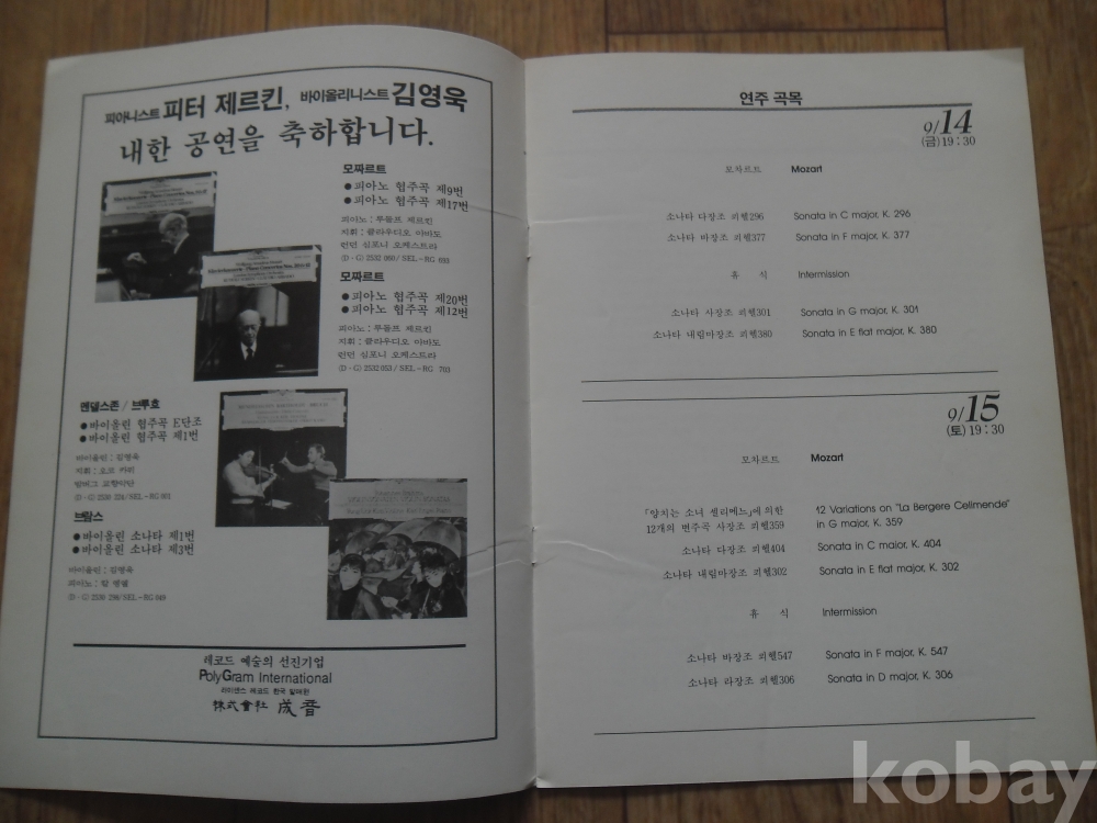 공연목록: 1984년 김영욱.제르킨 모차르트 소나타의 밤