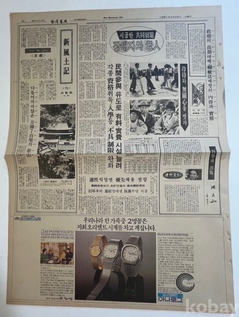 1981년 신문광고가 실린 한국일보 낱장 2장 입니다.
