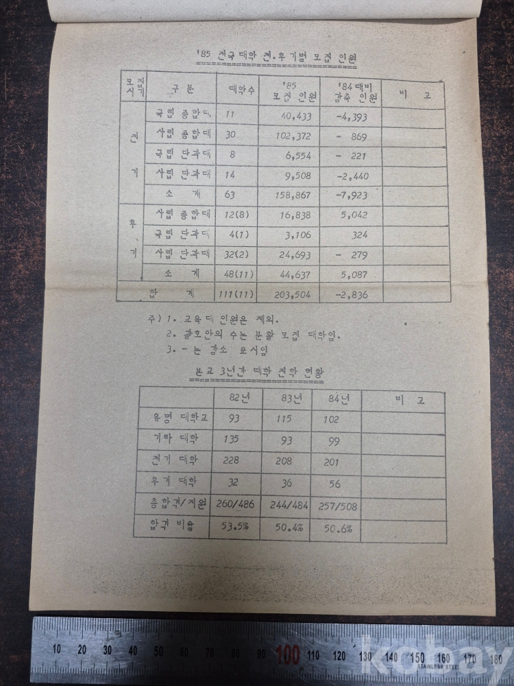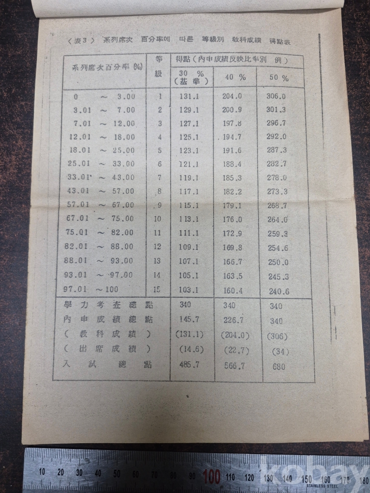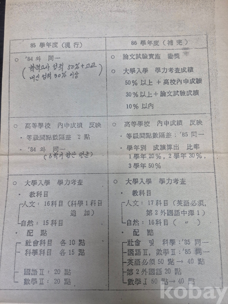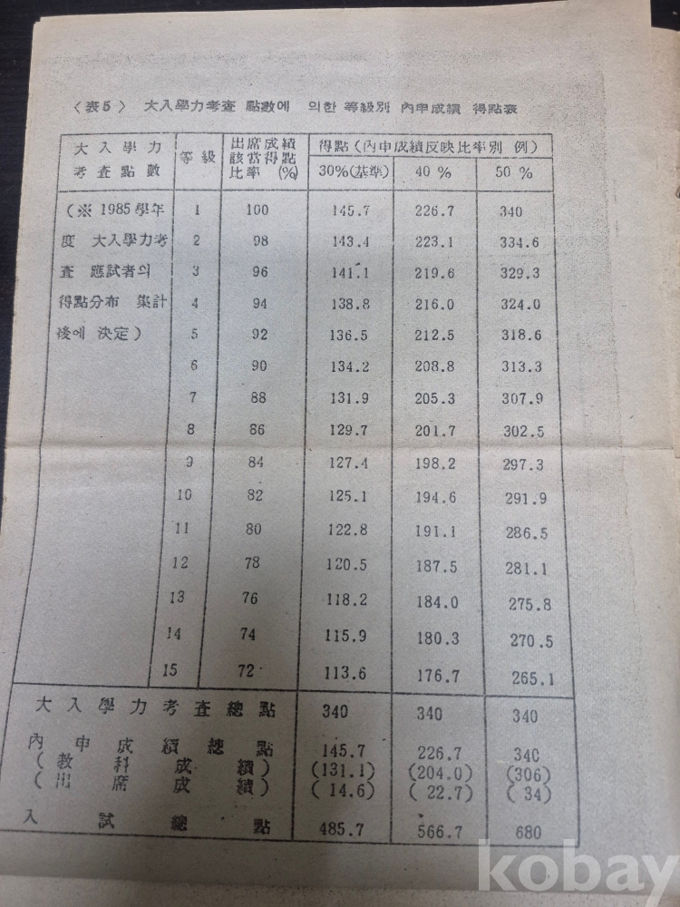 1984년 11월 13일 서울 혜화여자고등학교 대학입학 학력고사 교과목별 배점/ 내신성적등급별 점수 /대학전후기별 모집인원 학사일정 등 안내문 인터넷 안될 당시의 내용물입니다 4장입니다