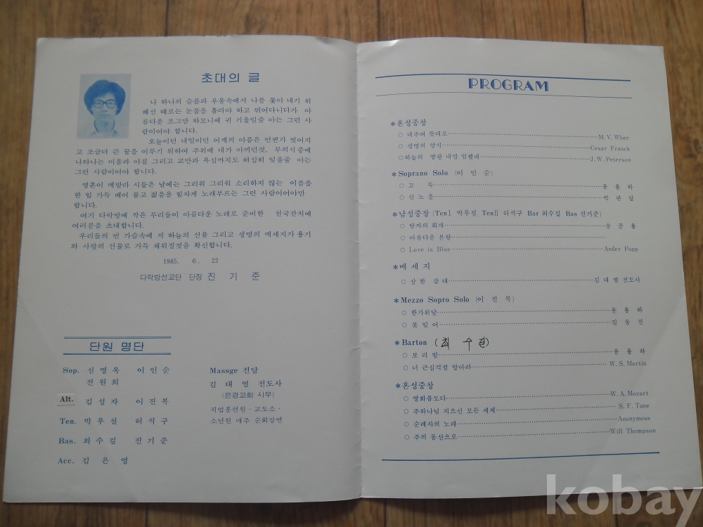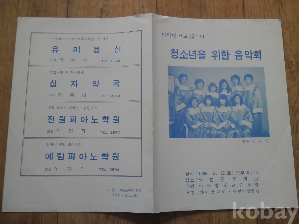 공연목록: 1985년 청소년을 위한 음악회