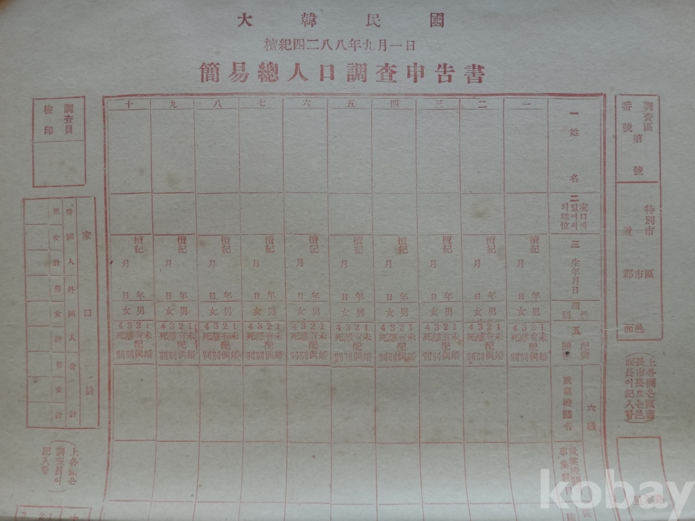 간이 총인구조사 신고서 (1955년, 대한민국)