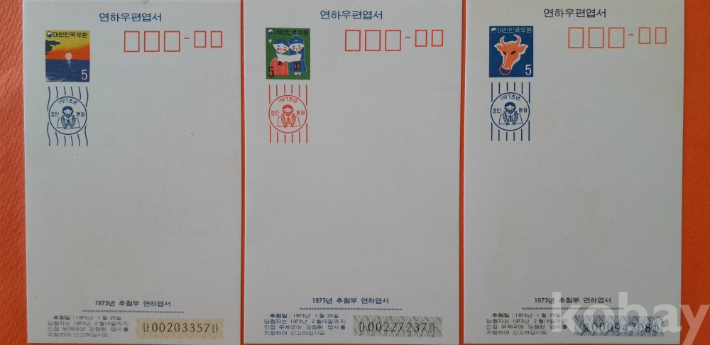 [연하엽서] 1973년용 연하 엽서 미사용 3종 세트(1972년) - 5번