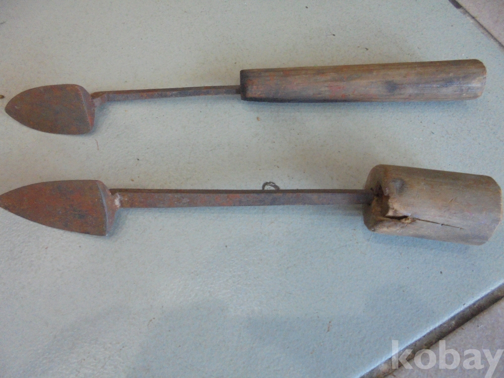 일반인두보다 작아 특이한데사용하던것으로 귀한것으로보이는 앙증스런 작은 무쇠인두2점 길이 23 cm 폭 2.5 cm 외사진참조
