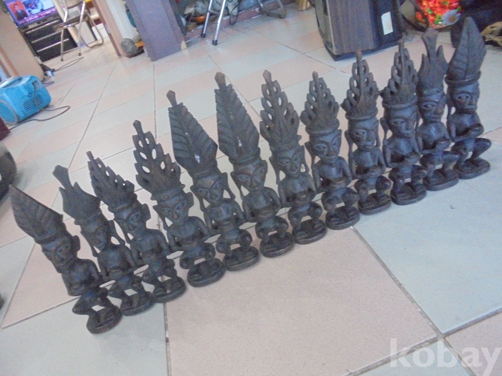 옛날 인디안들의 추장들의 모습을 조각하여 예술품으로 승화시킨 좋은나무로 조각 튼데없는 완벽한 인디안추장들의 조각품12명