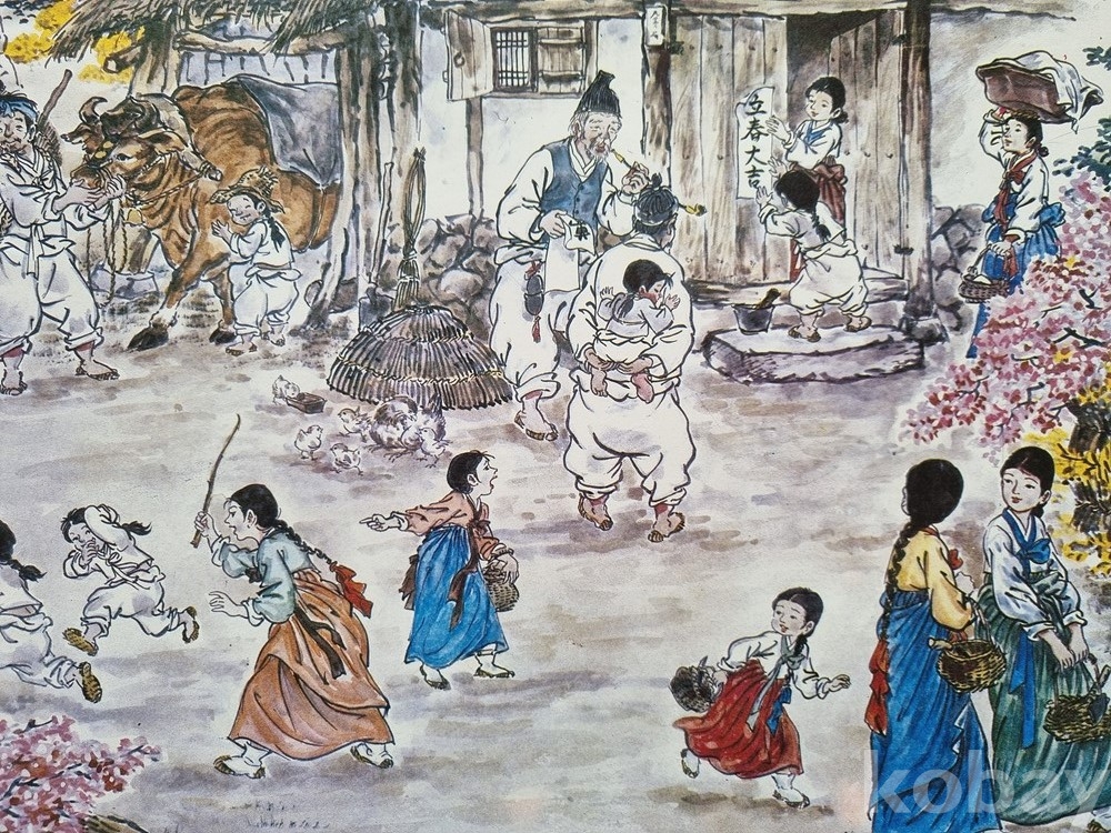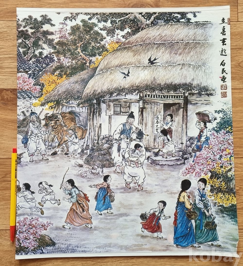 K-24 / 풍속화 (한국 전통적인 농촌 마을의 평화로운 일상을 담은 풍속) 영인
