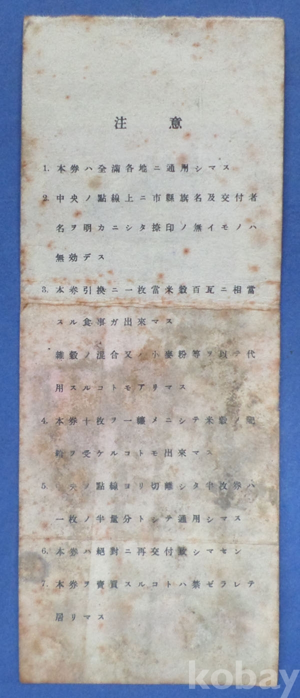일제강점기 普通外食券*만주 전지역에서 사용할 수 있는 식권으로서 뒷면에 주의사항이 적혀있다