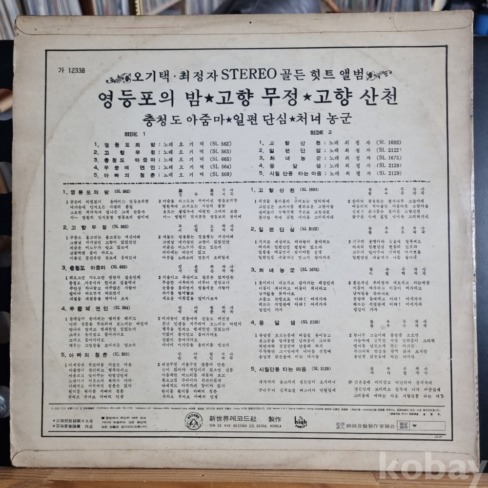 (희귀음반) 오기택, 최정자 스테레오 골든 힛트 [영등포의 밤, 고향산천] 신세계