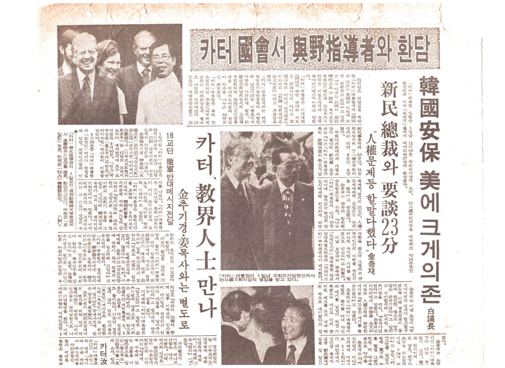 지미 카터가 김영삼 총재, 김수환 추기경 등과 만났다는 소식,