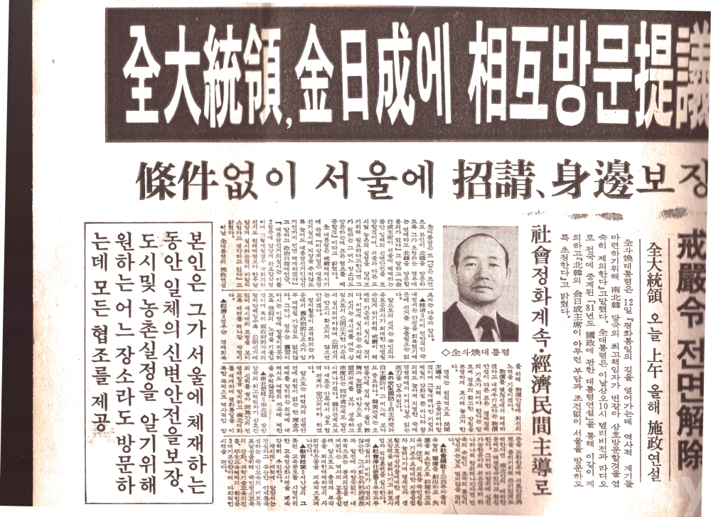 김일성 주석에게 상호 방문을 제의했다는 소식을 전했습니다.