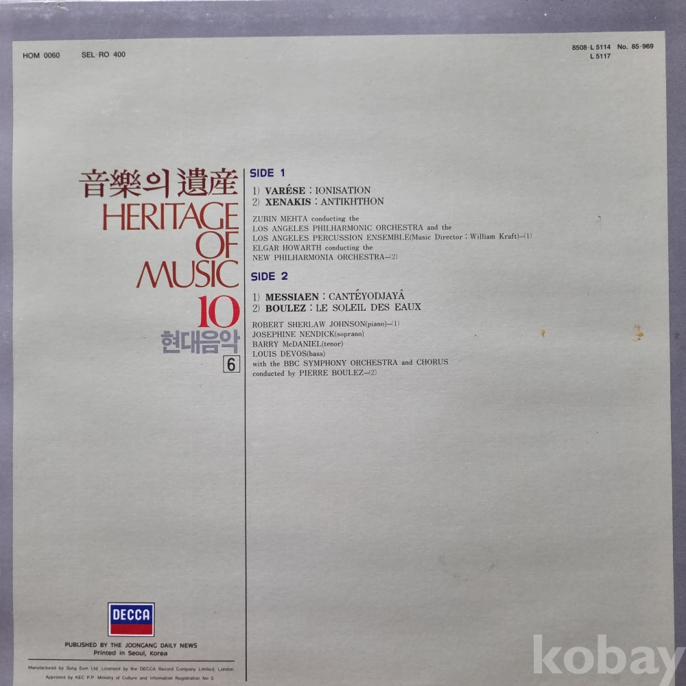 음악의유산 10 [현대 음악] 6LP, 중앙일보사, DECCA 라이센스 박스반