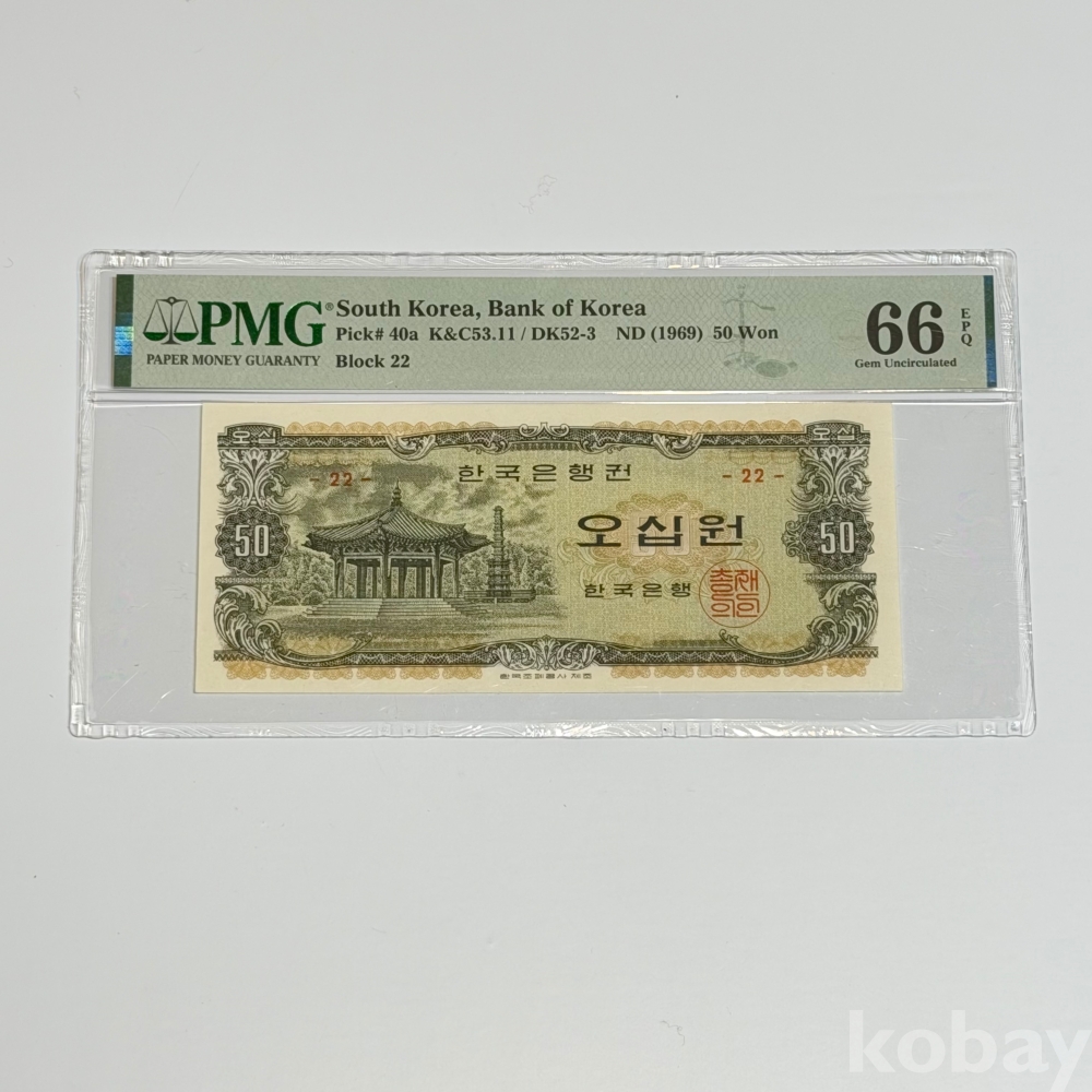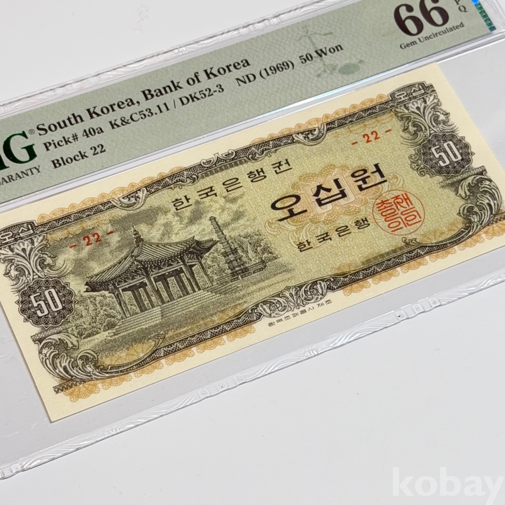 한국은행 나 50원 오십원 팔각정 판번호22 PMG66