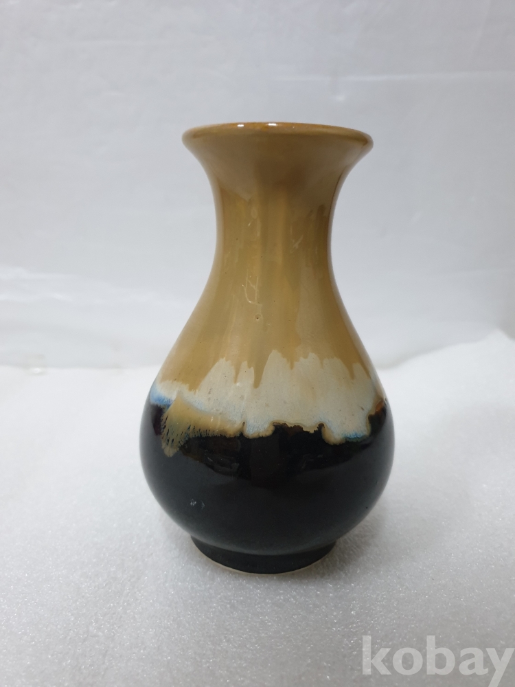 {천원경매} Y-1-1594 갈색+검정 도자기 화병 (6*15)