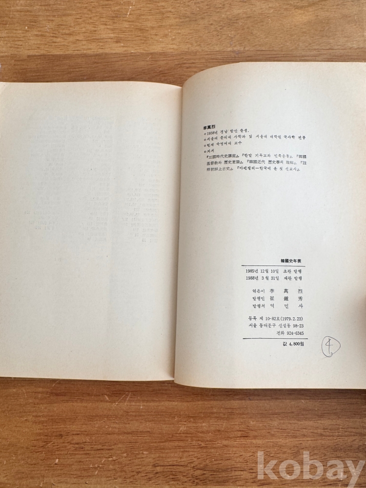 [한국사, 연표] 이만열, <한국사 년표>, 역민사, 1985, p. 541, 상태 중급(사진참조)