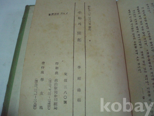 행복의 개척 (1955년, 이강록 편, 학우사)