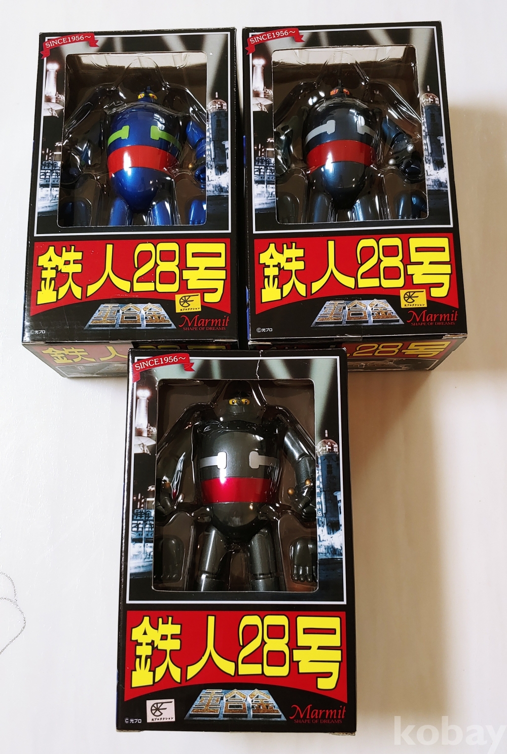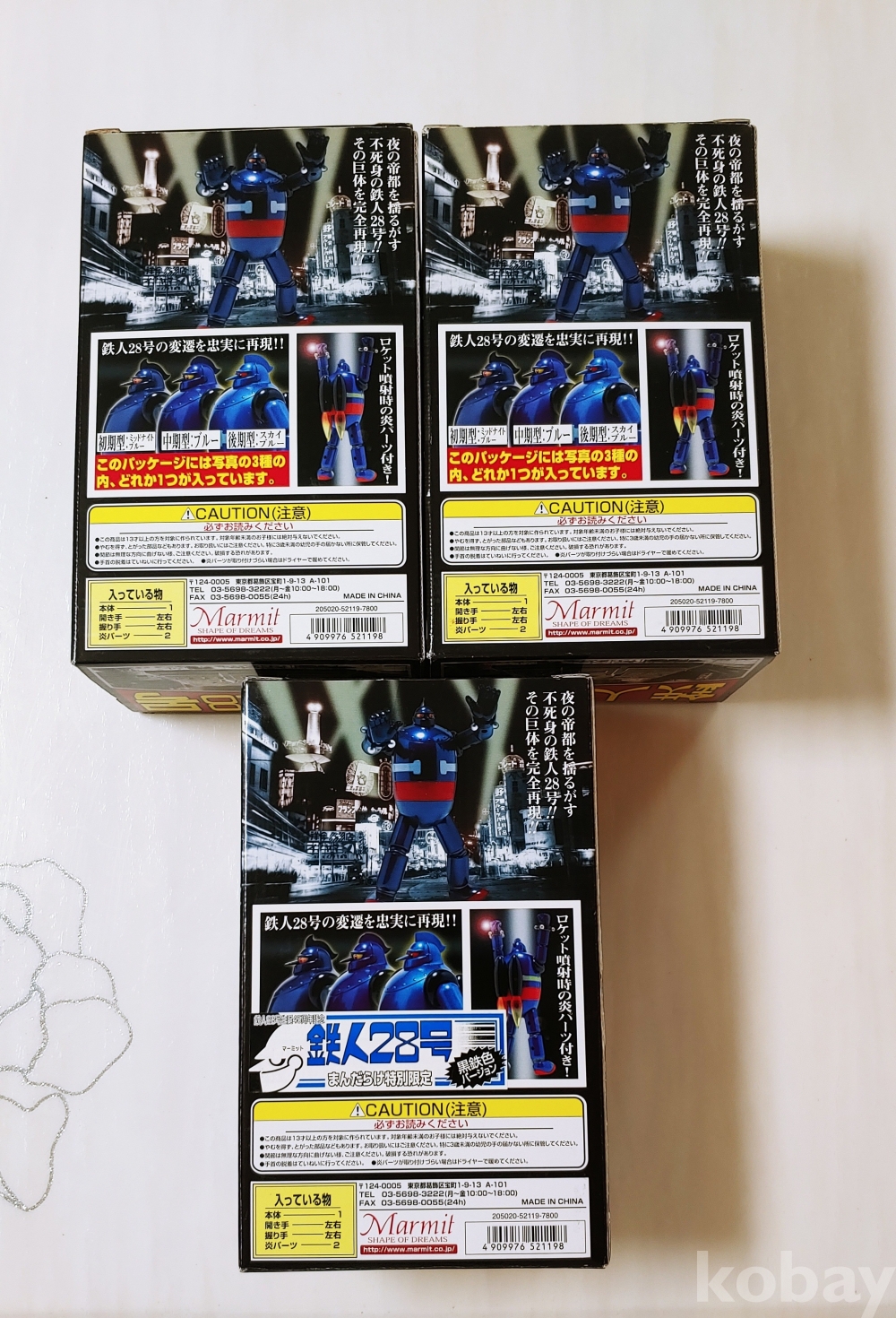마미트 중합금 철인28호 만다라케 흙철색 다크블루 스카이블루 초합금 3종세트 입니다