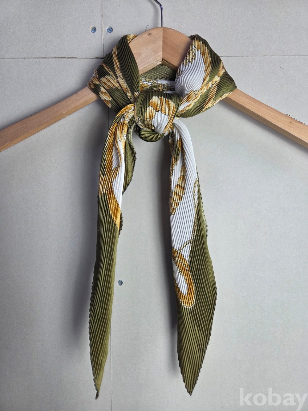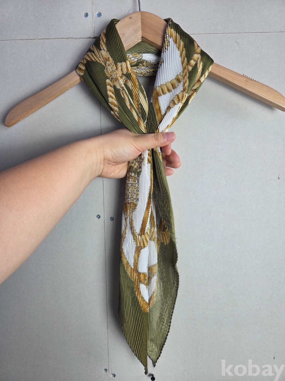 [천원옷장] ACC-01 명품패턴 플리츠 머플러 카키앤 크림 68*120