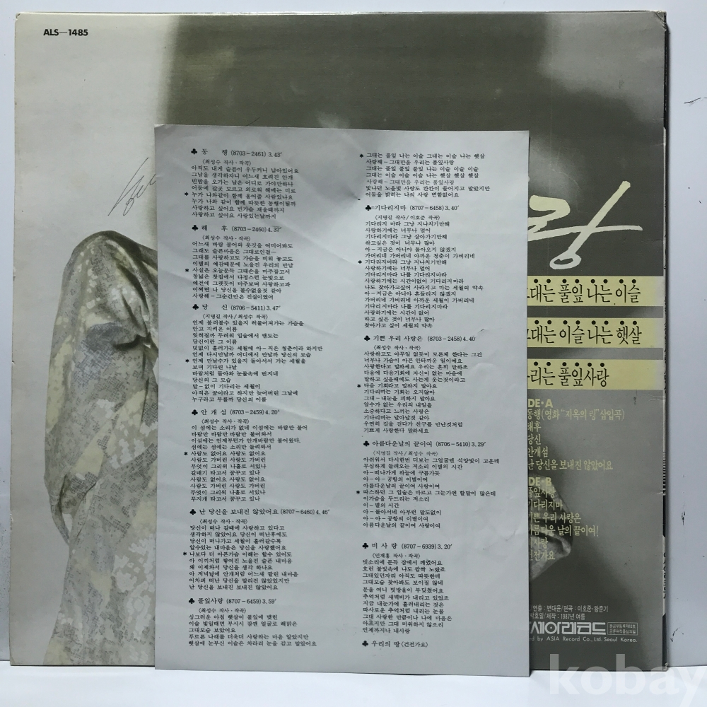 | 자켓상태 | EX : 약간의 마모, 모서리 찢김 존재 | 음반상태 | EX : 재생에 영향 없는 가벼운 기스 존재 | 발매정보 | 알수없음 | 가사지여부 | 무 |