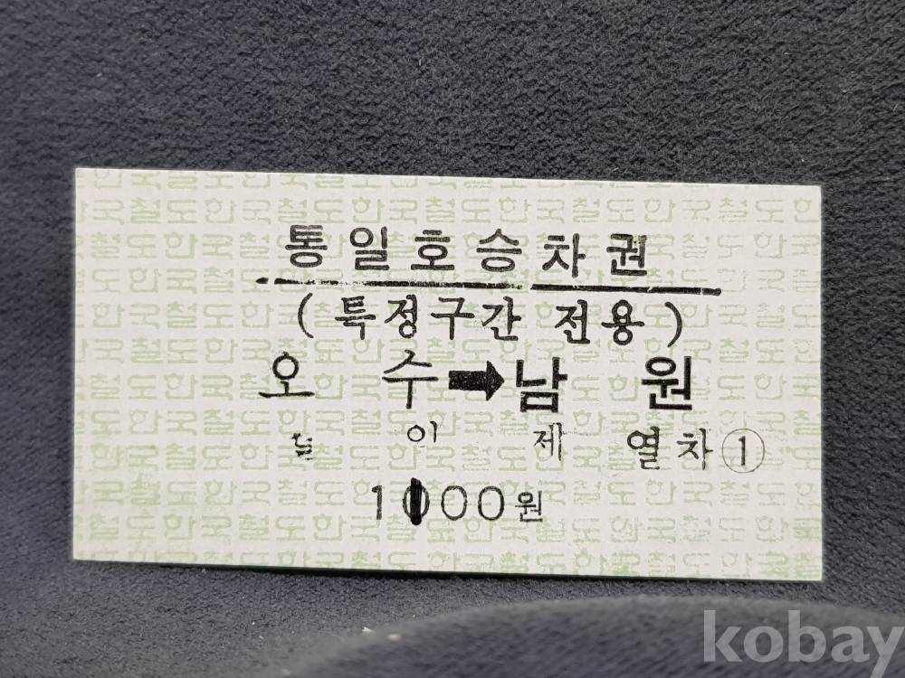- 미사용 통일호 승차권(특정구간전용) " 오수 ▶ 남원 " 1100원