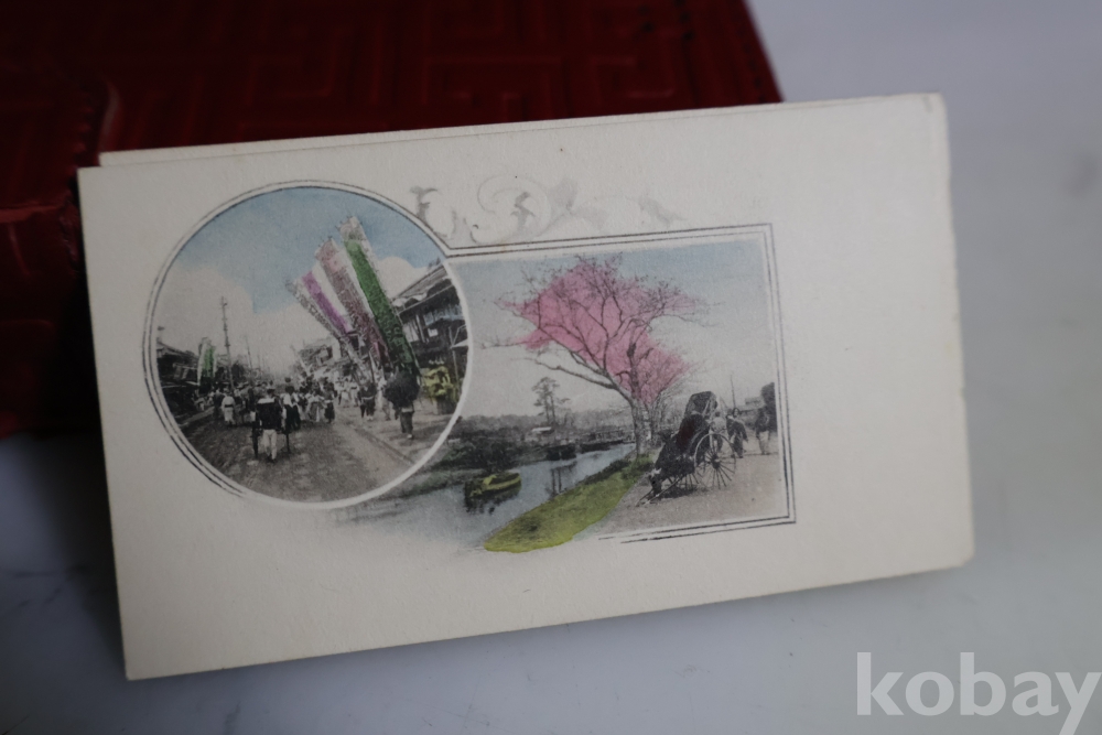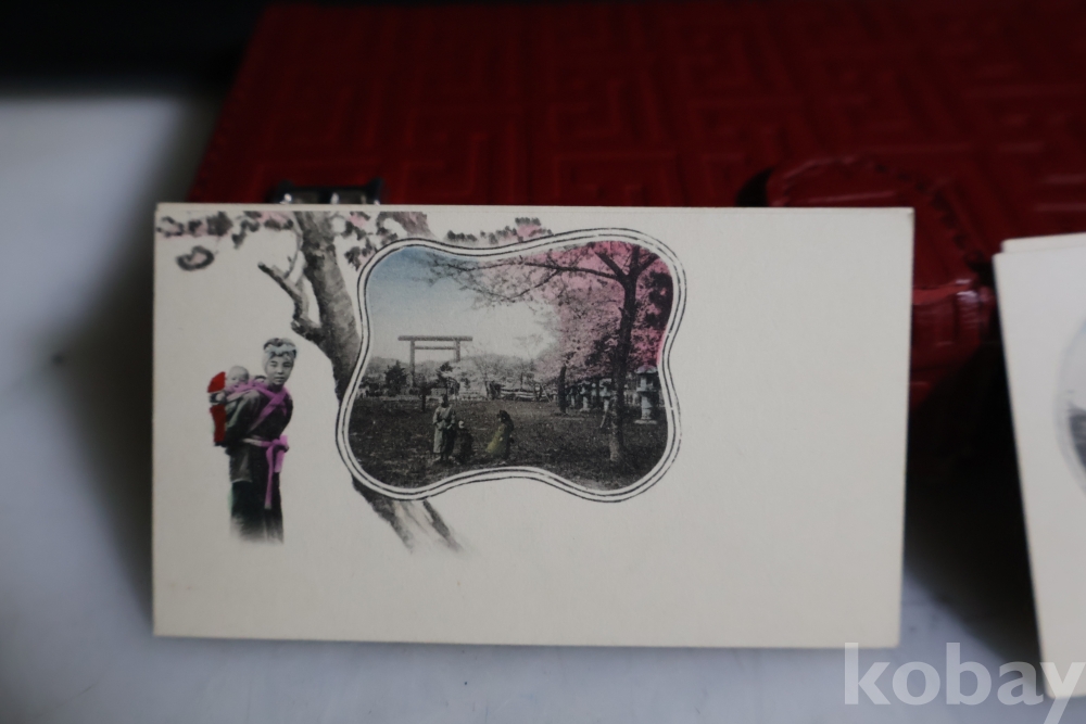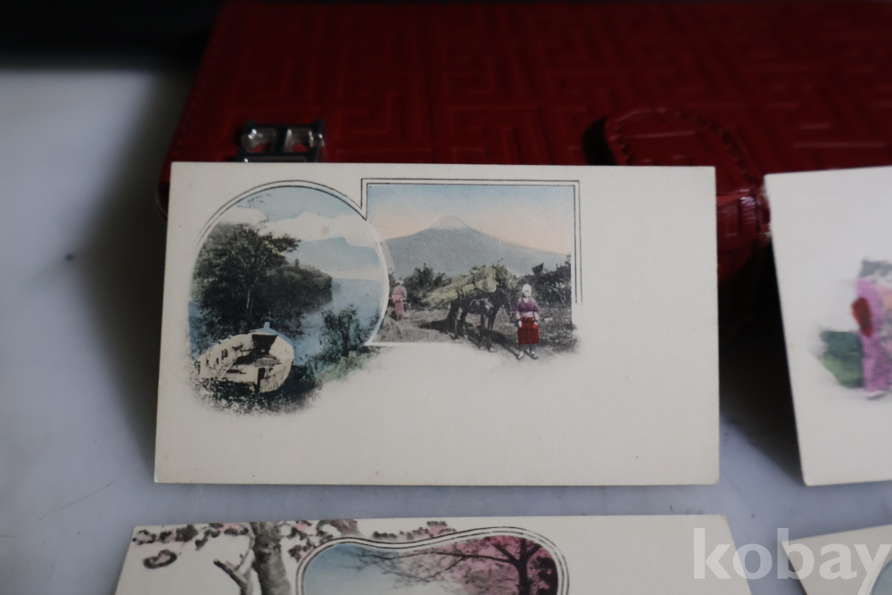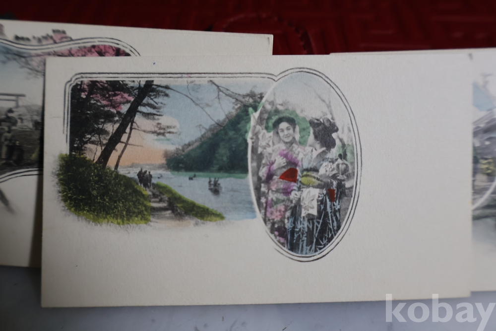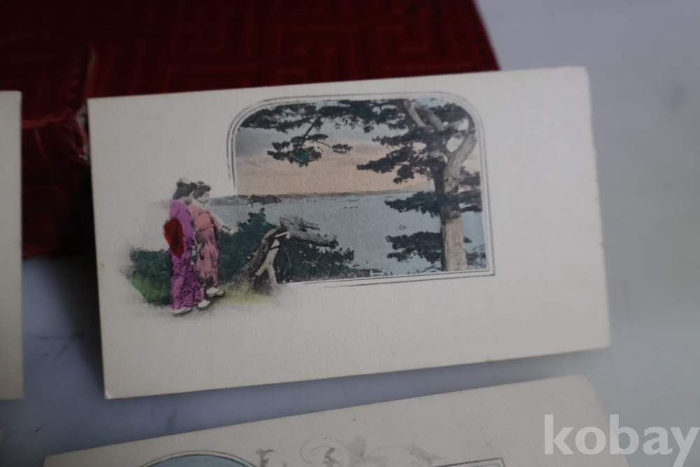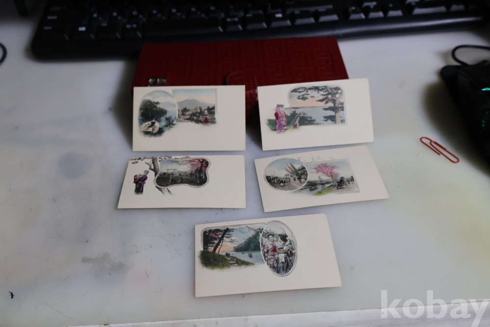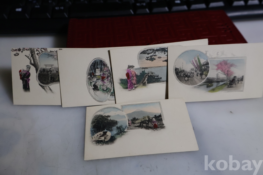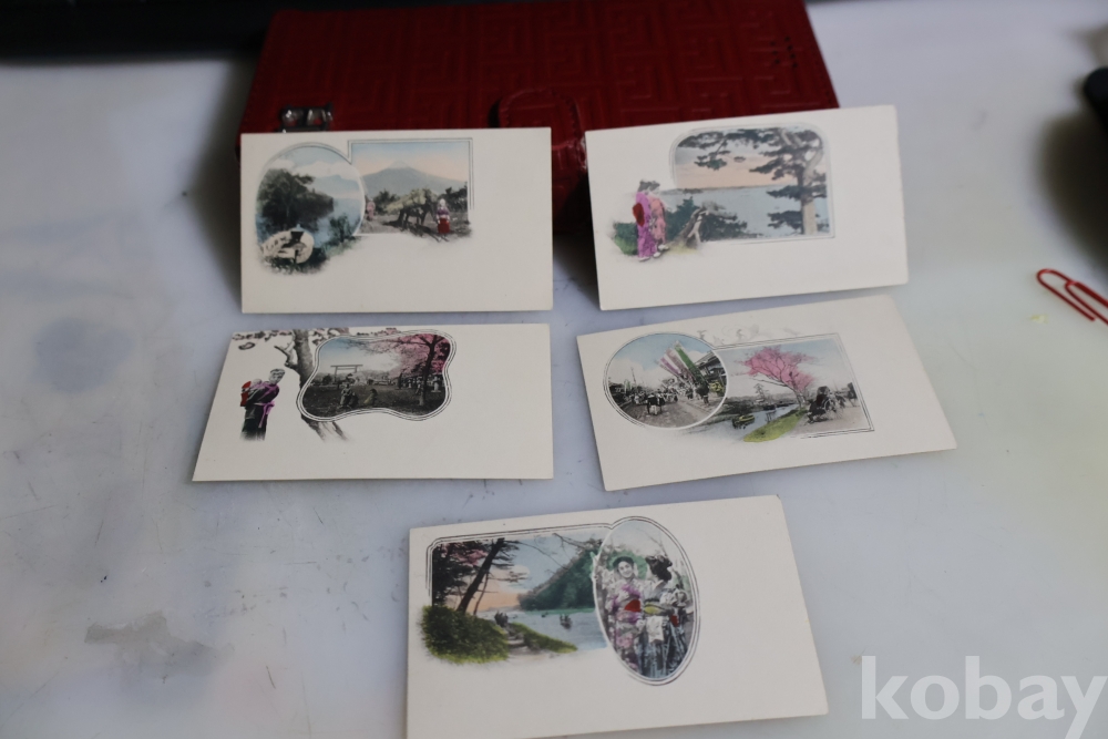 5장 임니다 일본 특유의 초대장 명암 메모 장 혹은 장식 등등 그림을 인쇄한후 덧 칠해서 만든 명치기의 종이 그림임니다 앙증맞은 귀한 그림 5 세트 요사이 아님니다 명치기 고미술 임니다