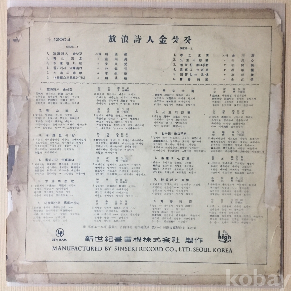 . 가요음반 대부분은 휘어짐이나 손상을 방지하기 위해 무지싱글자킷을 하나 더 사용하여 보관되었던 음반들입니다.