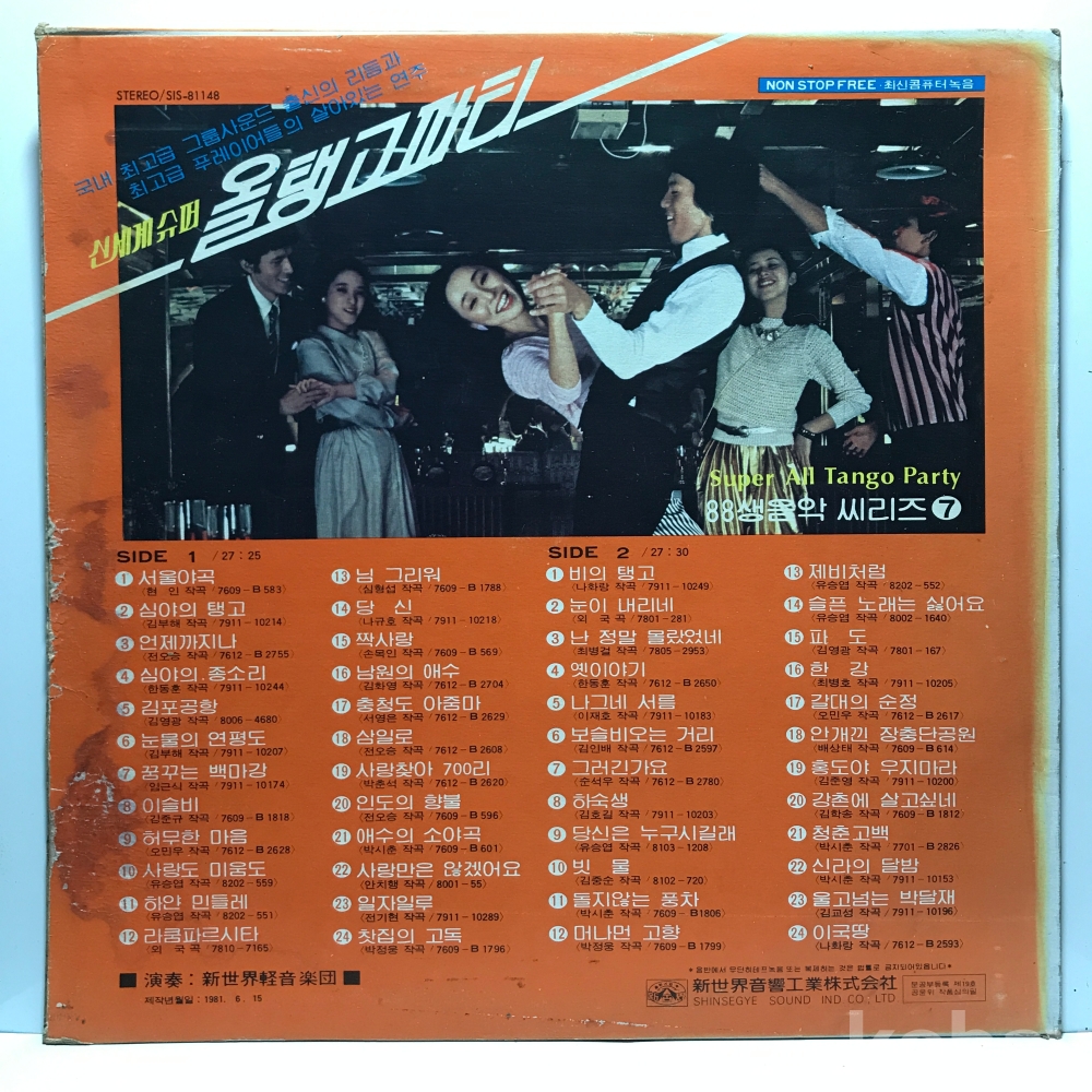 LP 83,740-97 신세계슈퍼 올탱고파티 - 88생음악 씨리즈 ⑦ (경음악) . 자켓 VG+ 알판 EX 81 년 국내반