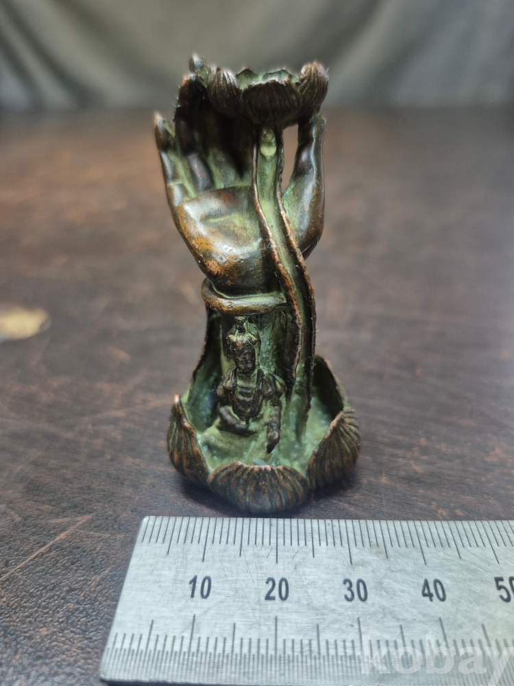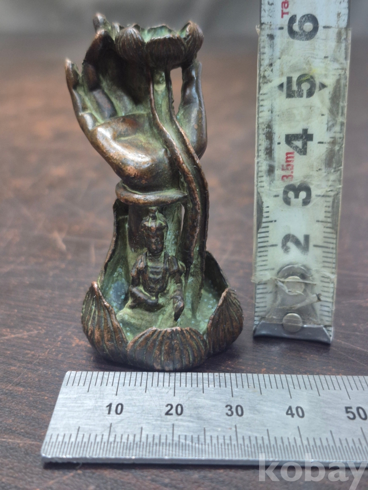작은 부처님 문양과 손 바닥 모양으로 만들어진 동 향로 통동으로 제작되어 있어요 3.5*3*6.5
