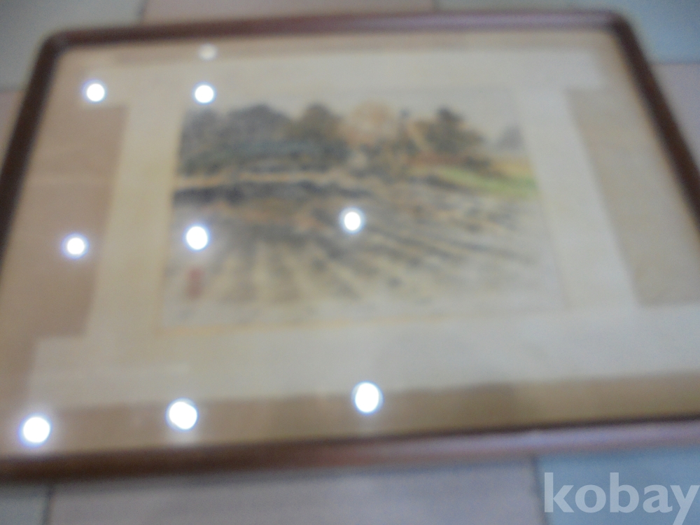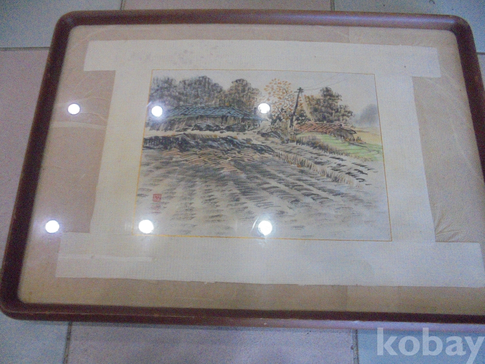 서울 교외농촌으로 전봇대가 들어간 막산업화시절그린것으로 추정되는 그래도 당시개화된 농촌풍경그림 액자