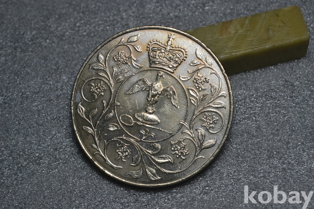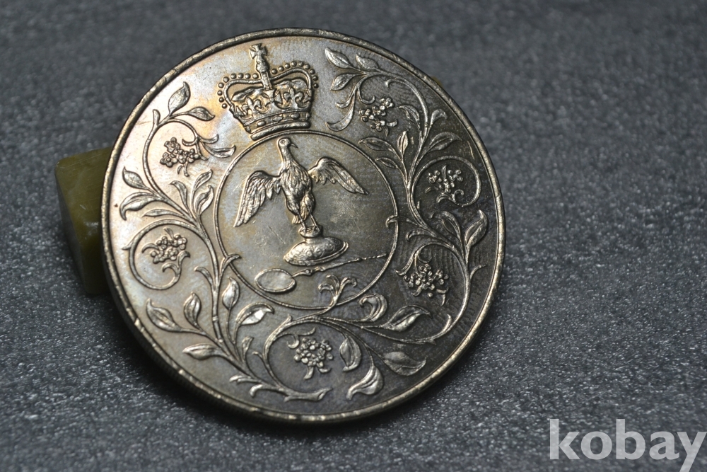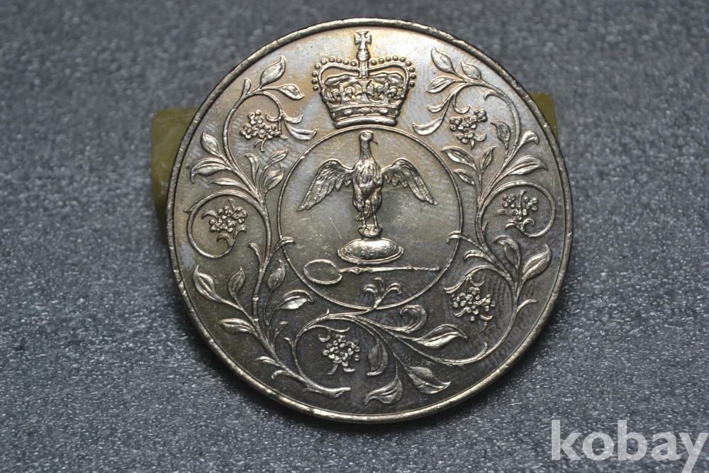 " 귀한종류 (38.5 mm 대형 크라운 사이즈)(극미품 이상~) " ~ 영국 엘리자베스 2세 즉위 25주년 기념주화 25뉴펜스 / 1977년도 제작발행주화" 영국 엘리자베스2세 즉위25주년 기념주화 / 대형 크라운 주화 "