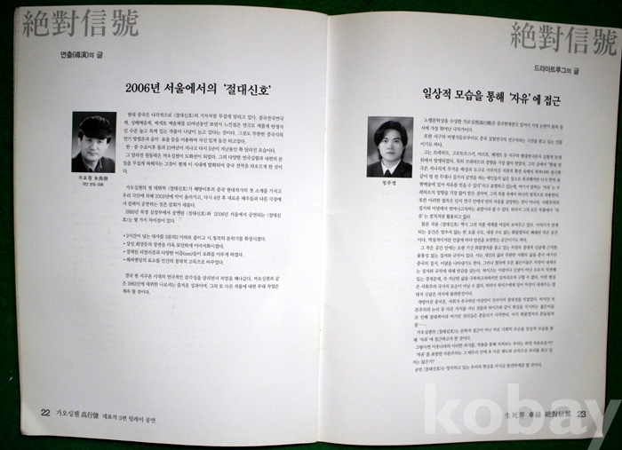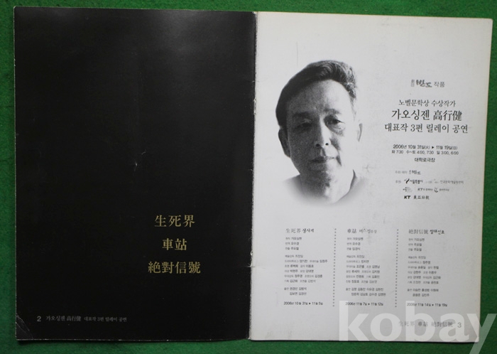 (연극공연자료) 노벨문학상 수상작가 가오싱젠 고행진 대표작 3편 릴레이 - 2006년 / 생사계. 버스정류장. 절대신호 : 극단 반도 작품...
