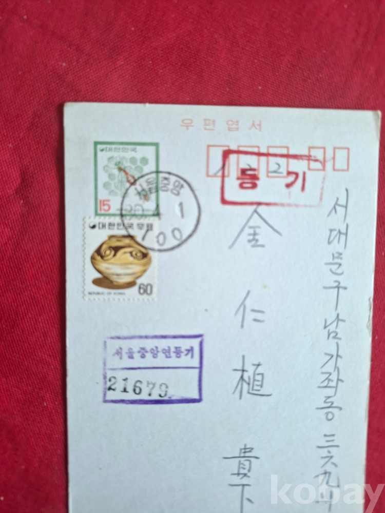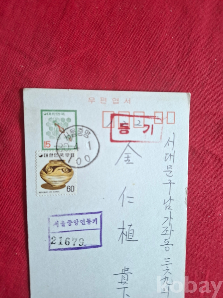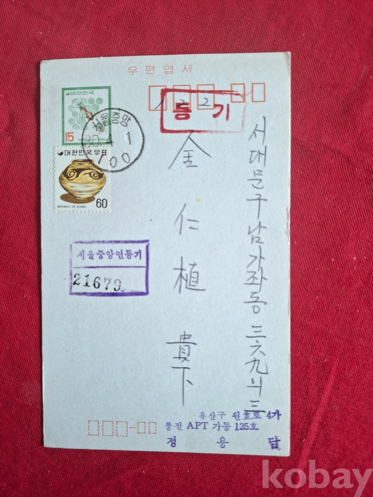 1980년 15원 짜리 등기 우편엽서 (내용은 없음)