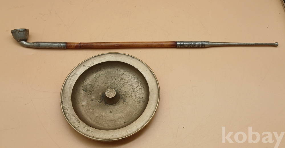 조선시대 우리나라 전통 곰방대와 유기 재떨이 입니다.