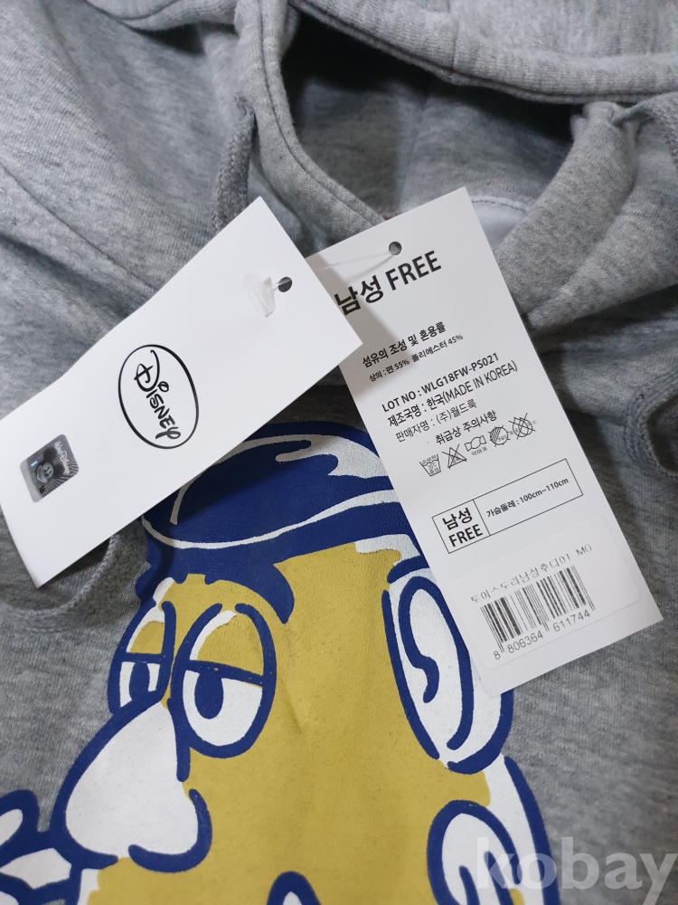 {천원경매} Y-1-1600 토이스토리 그레이 남성 기모 후드 티셔츠 (FREE, 가슴반 57cm)