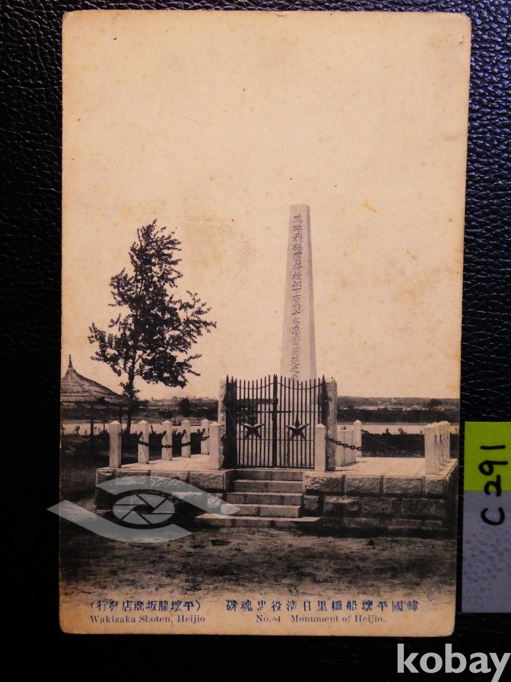 ▣근대한국엽서(진본): 대한제국기 엽서, 구 한국 시대 평양 선교리의 청일전쟁 충혼비/1매/역사자료, 일제시대, 일제강점기 사진엽서, 그림엽서, 회엽서.C291