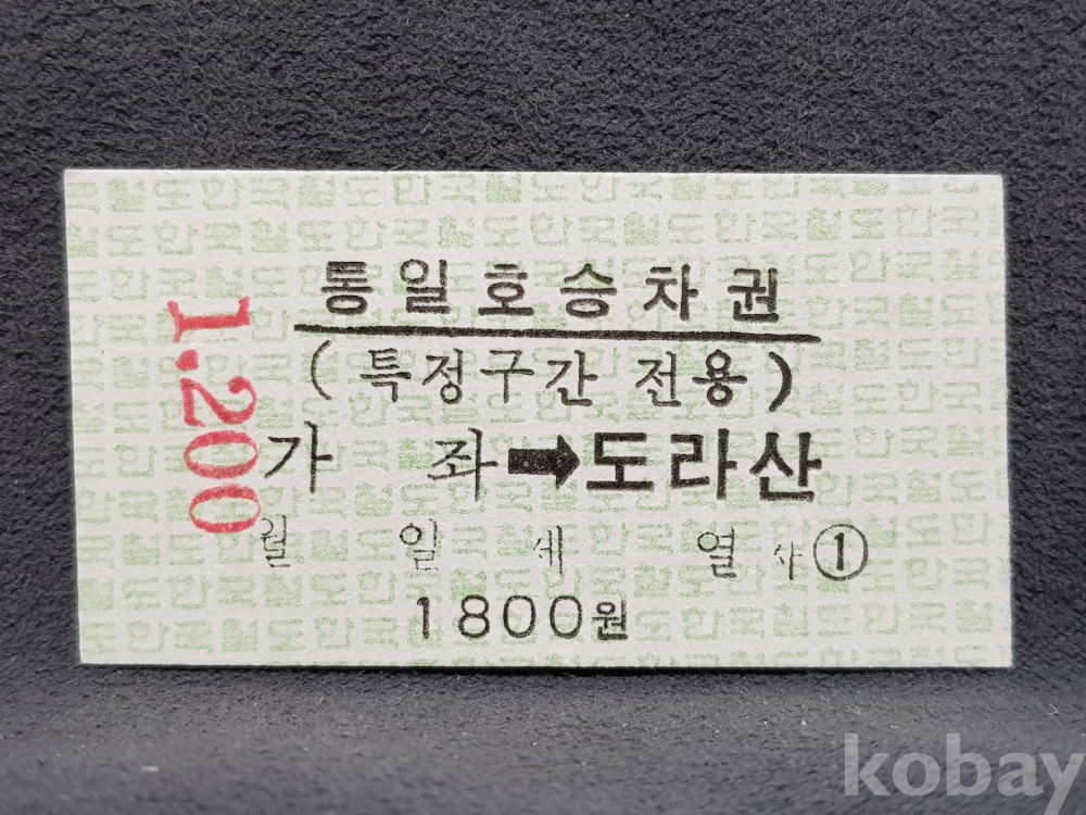 - 미사용 통일호 승차권(특정구간전용) " 가좌 ▶ 도라산 " 1200원