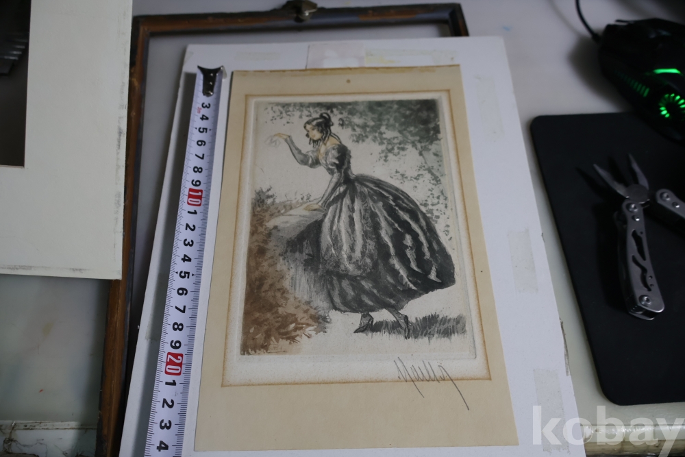 멋진 에칭판화 임니다 액자 역시 아트누보 를 가진 명화 이며 화가의 연필 사인아 보이는 명화 임니다 사진 참조 하세요 액자는 세월의 흔적이 보임니다 /