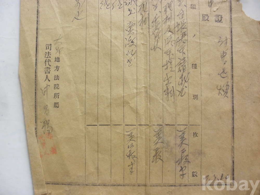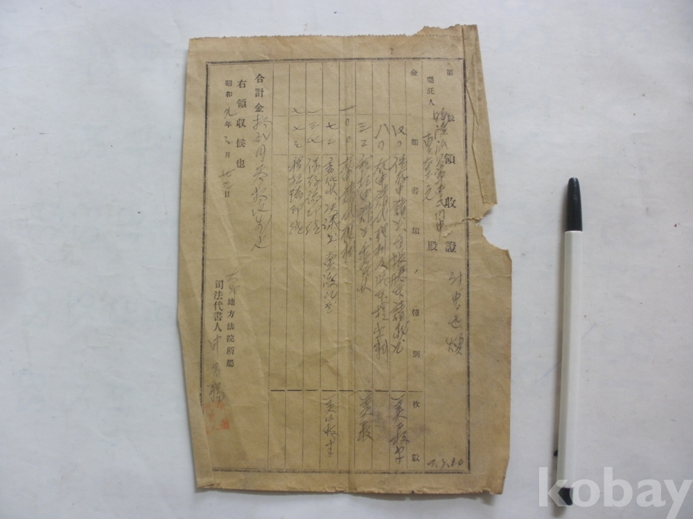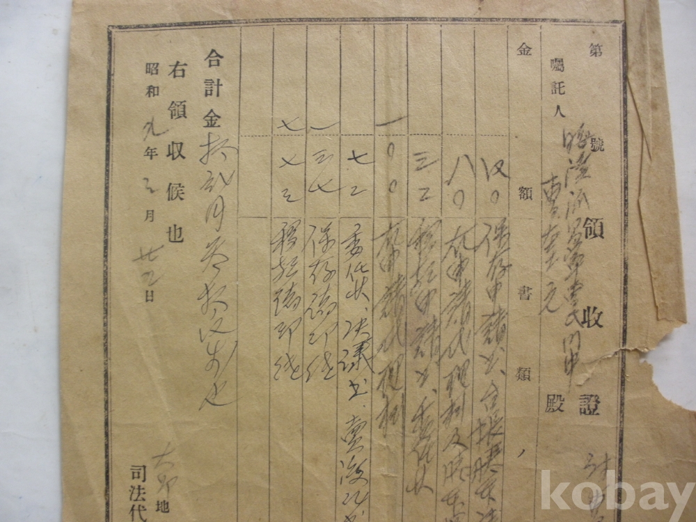대구지방법원소속 사법대서인 - 영수증 (소화9년)