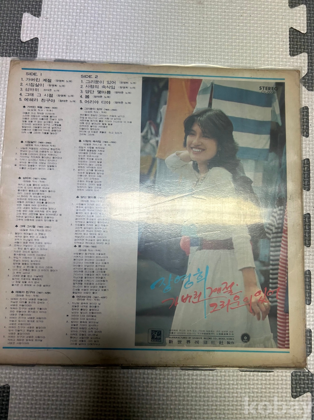 자켓은 사진에 나타나듯 모서리 부분 생활감과 누런 세월감 많이 있고 음반은 눈에 띄는 큰 긁힘,휨은 없고 미세한 긁힘은 무시할 수 없어요.귀하고 아끼던 음반이지만 메니아분께 분양합니다.