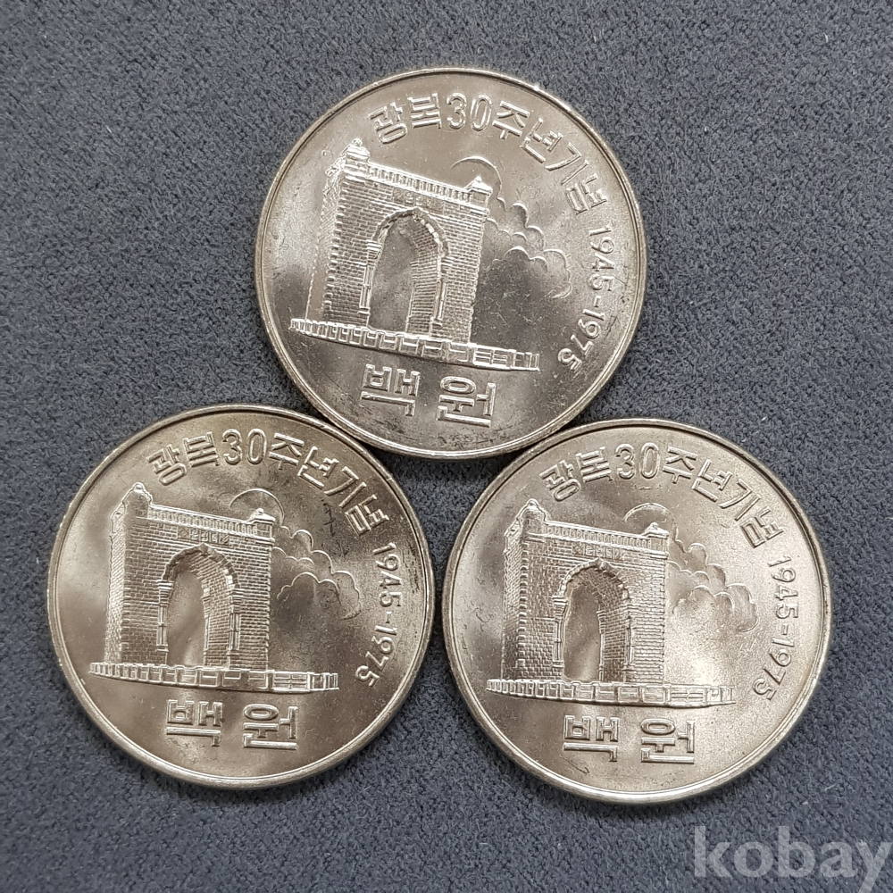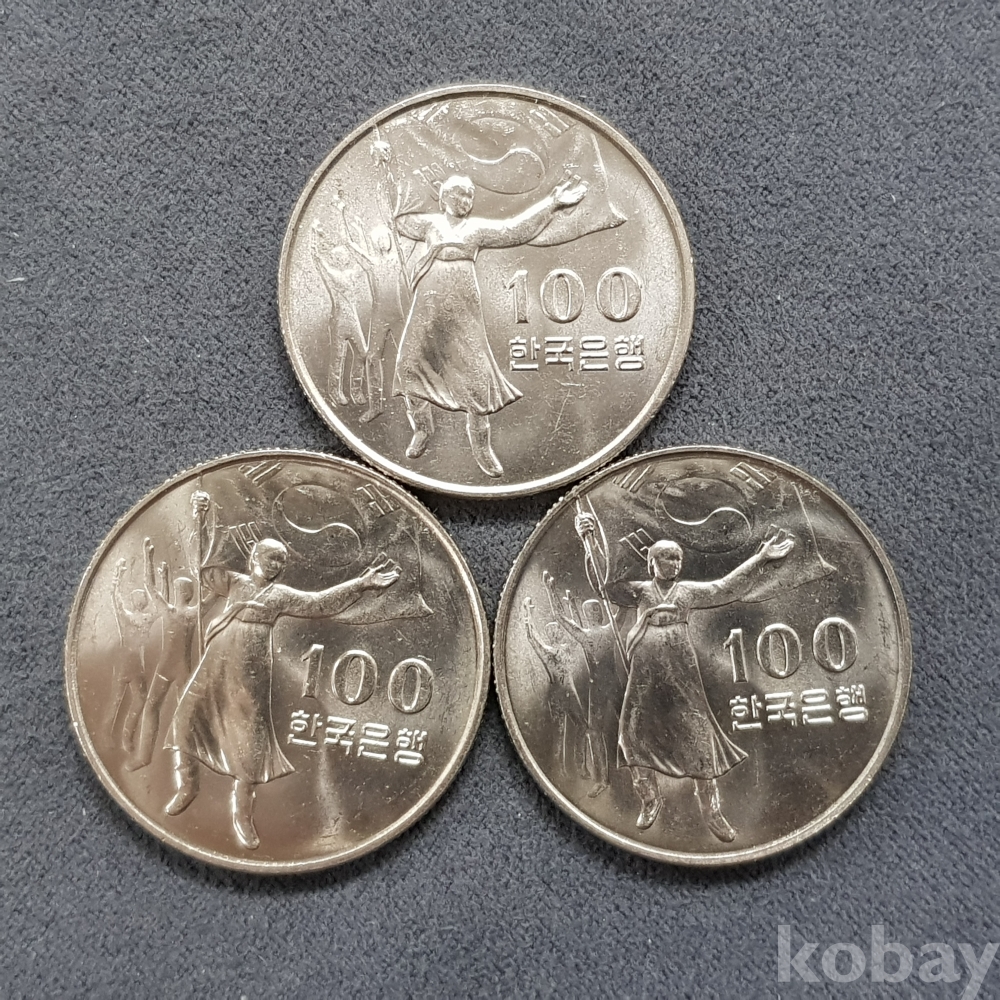 - 광복 30주년 기념 독립문 - 태극기를 든 여인 유관순 백원화 기념주화 - 3개 일괄