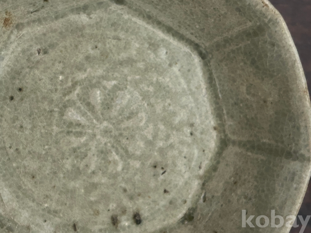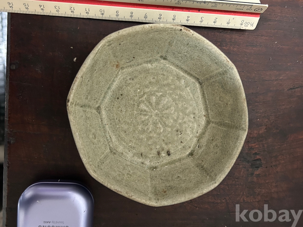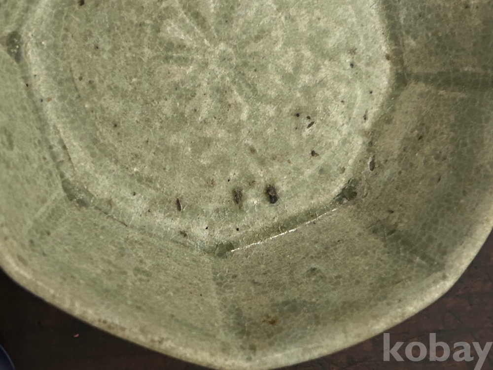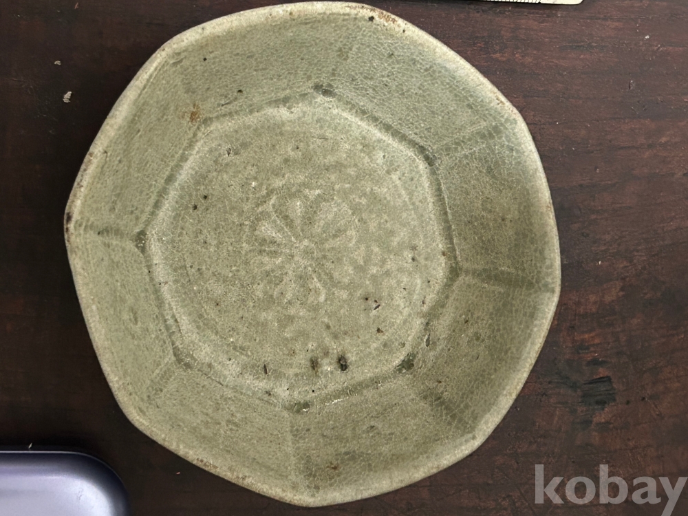 사진에 나타나듯 보기드문 고려 백상감 팔각 접시입니다.