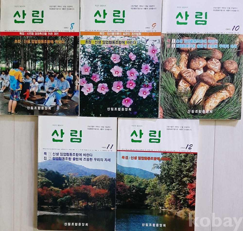 산림1993년 8월호 , 산림1993년 9월호, 산림1993년 10월호, 산림1993년 11월호, 산림1993년12월호 5권 일괄판매